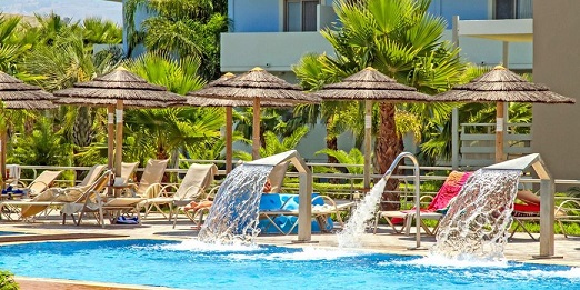 Zachwyca rozmachem i nowoczesnością, znakomicie zorganizowany, idealnie dopasowany do wakacyjnych wymagań turysty XXI w.! Luksusowy, pięknie zaprojektowany resort na rozległym terenie, w olbrzymim wypielęgnowanym ogrodzie. Centralnym miejscem hotelu jest fantastyczny basen, jeden z największych w Grecji, ze wspaniale zakomponowanymi mostkami, barami i słonecznymi tarasami. Imponujące lobby lśni marmurami, podobają się hotelowe restauracje i bary z oryginalnym i modnym designem. Komfortowe pokoje w eleganckim, prostym stylu mają wszystkie wygody i są utrzymywane w nieskazitelnej czystości. Całości dopełnia znakomita i urozmaicona kuchnia z bogatym wyborem deserów. Ucztą dla ciała jest ekskluzywne hotelowe spa z kuszącą listą zabiegów.